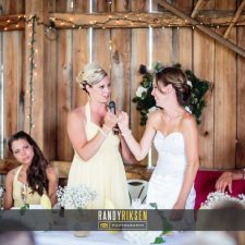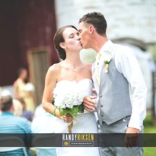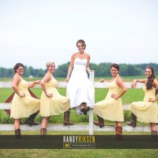 The country wedding of Chad Siler to lovely Kaylee Burman was witnessed by family and friends on July 11, 2015. By the old white silo of The Little Red Barn of Nunica LLC, the outdoor ceremony was underneath clear blue skies and perfect summer weather! Four bridesmaids in cute lemon-butter dresses and brown cowboy boots were escorted down the aisle by dapper groomsmen in smart gray outfits! After the ceremony, they all marched up the ramp wearing cool sunglasses followed by the beaming couple! The reception, inside the barn, was filled with love and laughter. The Master and Mistress of Ceremonies were Scott and Tracy Belkins, uncle and aunt of the groom! The barn was aglow in romantic string-lighting and guests danced the night away. Our very best wishes to Mr. and Mrs. Chad Siler! (Photographs courtesy of Randy Riksen http://www.randyriksenphotography.com/ )