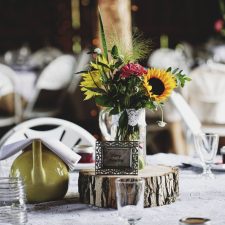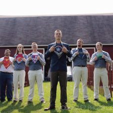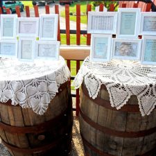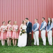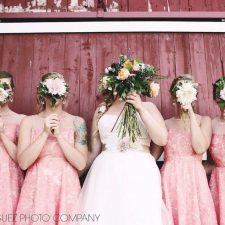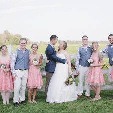 The wedding of Joe and Erica was filled with intense love and romance on September 6, 2015! With the help of Erica’s mom, Amy Slagter, their Sunday wedding was an event full of rustic charm! The couple drew color inspiration from the sweetness of peach and baby blue, lots of fresh flowers and delicate lace tablecloths! Joe and his grooms-men wore “Super Hero” T-shirts underneath their formal garb, and the bridesmaids wore matching lace dresses with gold sandals! The touching ceremony was underneath the maple tree followed by the reception catered by Chef August Johnson of Quality catering. An outdoor photo-booth completed the fun! May you live happily ever after, dearest Erica and Joe!