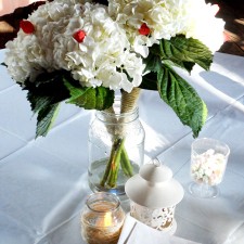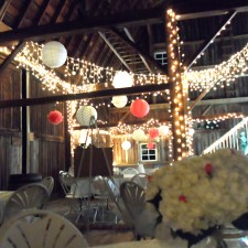 The intimate summer wedding reception of Casey Painter and Danielle Schuitema was celebrated at the Little Red Barn of Nunica in the evening of Sept. 13, 2014! The barn, festooned with fairy lights and peach colored paper lanterns, was aglow with miniature birdcages lit with battery-operated candles! About 50 close family and friends dined and danced to the beat of the DJ! The delicious food was catered by Top Shop Butcher Shop from nearby Spring Lake, which included pulled pork sandwiches, cheesy baked potatoes, pickles and chips. Home-made pastries lovingly baked by Danielle’s mom and sister were a sweet treat for everyone. Best wishes to the newlyweds! Live long and prosper!